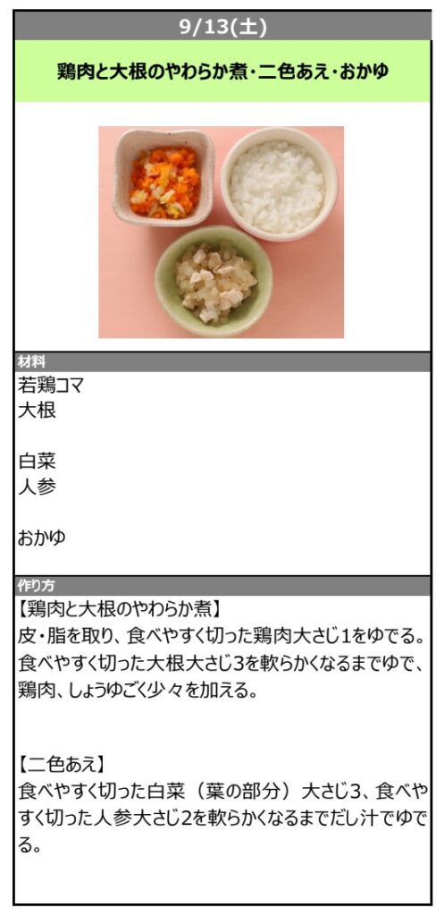 この日のメニューは、〜スマイリーミール〜でしたので、離乳食メニューもついてました。